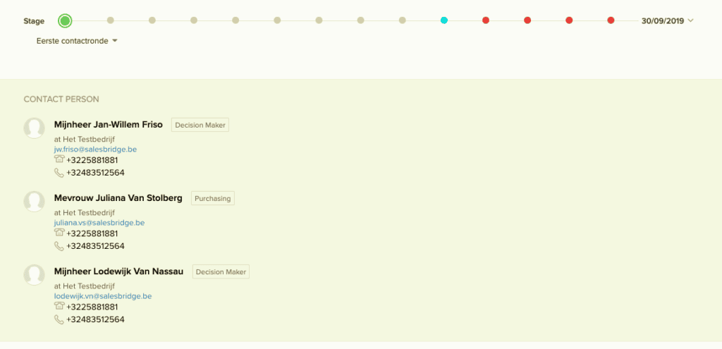 Zo sla je nooit meer de bal mis wanneer je in gesprek gaat met je klant. Bovendien weet nu meteen ook heel jouw interne organisatie wie betrokken is en op welke manier. Handig te weten wanneer je klant belt en je afwezig bent!