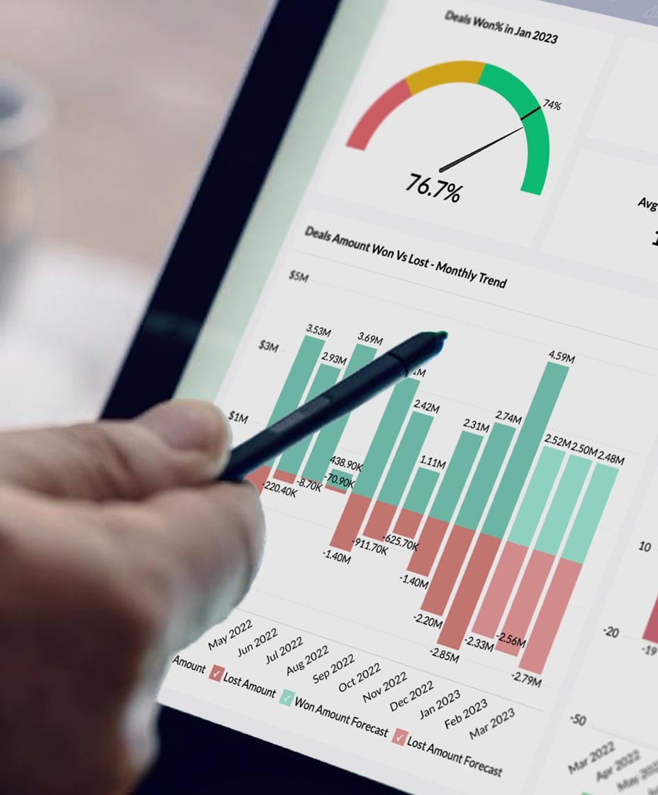 Met functies zoals intuïtieve datavisualisaties en gepersonaliseerde boordtabellen, stelt Zoho Analytics u en uw medewerkers in staat om trends te ontdekken, bedrijfsprocessen te optimaliseren en beter geïnformeerde beslissingen te nemen.